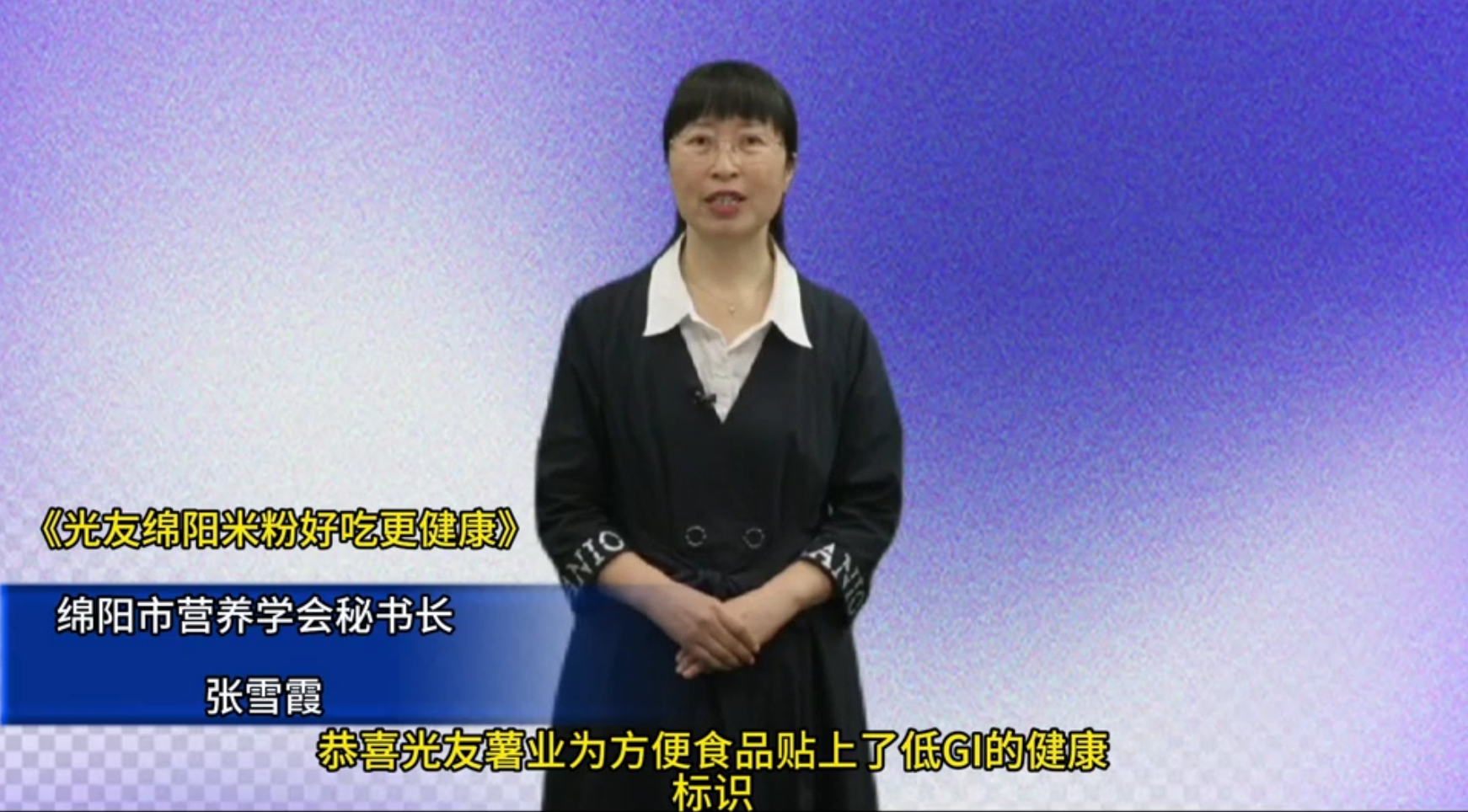 綿陽市營養(yǎng)學會秘書長張雪霞在發(fā)布會視頻分享《光友綿陽米粉好吃更健康》:“光友綿陽米粉,經(jīng)過技術創(chuàng)新、科學檢測及臨床實驗,光友綿陽米粉牛肉米粉GI值51,達到了低GI標準,并且人體實驗結果顯示,光友綿陽米粉的餐后兩小時血糖曲線呈現(xiàn)緩升緩降的狀態(tài),有助于維持餐后血糖的穩(wěn)定狀態(tài),從而可以避免因血糖的劇烈波動引起的一系列不良的代謝反應。這對于方便食品來說,能夠做到低GI是很不容易的!恭喜光友薯業(yè)為方便食品貼上低GI健康標識!也給想要追求健康的朋友們外出時,有了方便健康的選擇!祝愿光友薯業(yè)未來研發(fā)更多健康美味的方便食品!給大眾更多健康的選擇!”