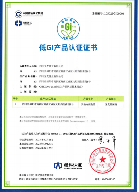 光友薯業(yè)對(duì)此次酸辣粉獲得低GI認(rèn)證表示非常榮幸和自豪,光友薯業(yè)表示,將繼續(xù)秉持“健康、美味、創(chuàng)新”的理念,不斷推出更多符合消費(fèi)者需求的健康食品,為人們的健康生活貢獻(xiàn)更多力量。