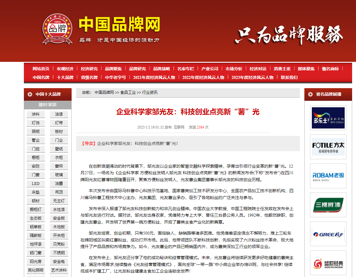 轉(zhuǎn)載中國品牌網(wǎng)——企業(yè)科學家鄒光友:科技創(chuàng)業(yè)點亮新“薯”光