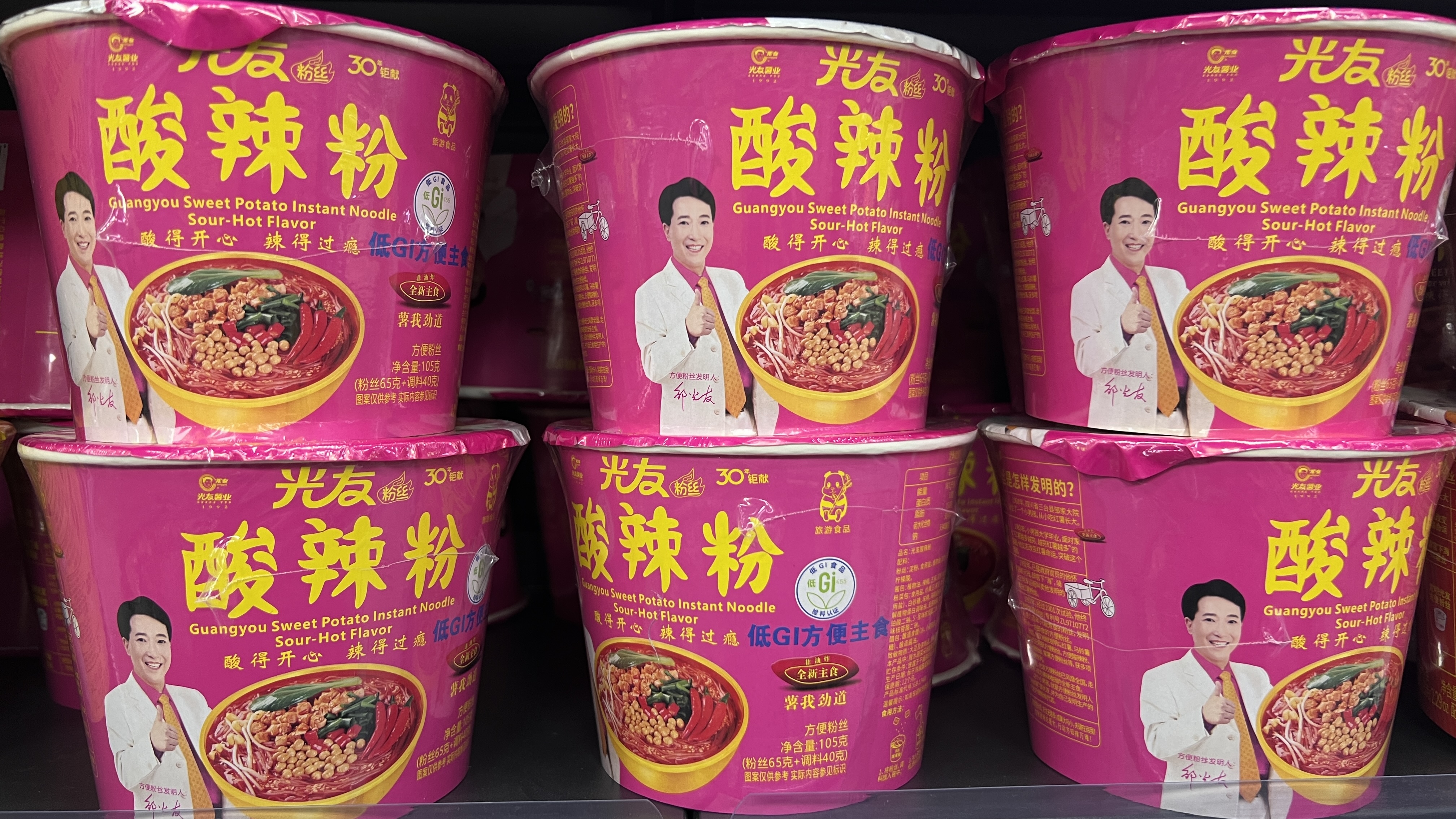 光友酸辣粉絲紅薯粉絲網(wǎng)紅方便粉絲即泡即食非油炸麻辣細(xì)粉絲6杯